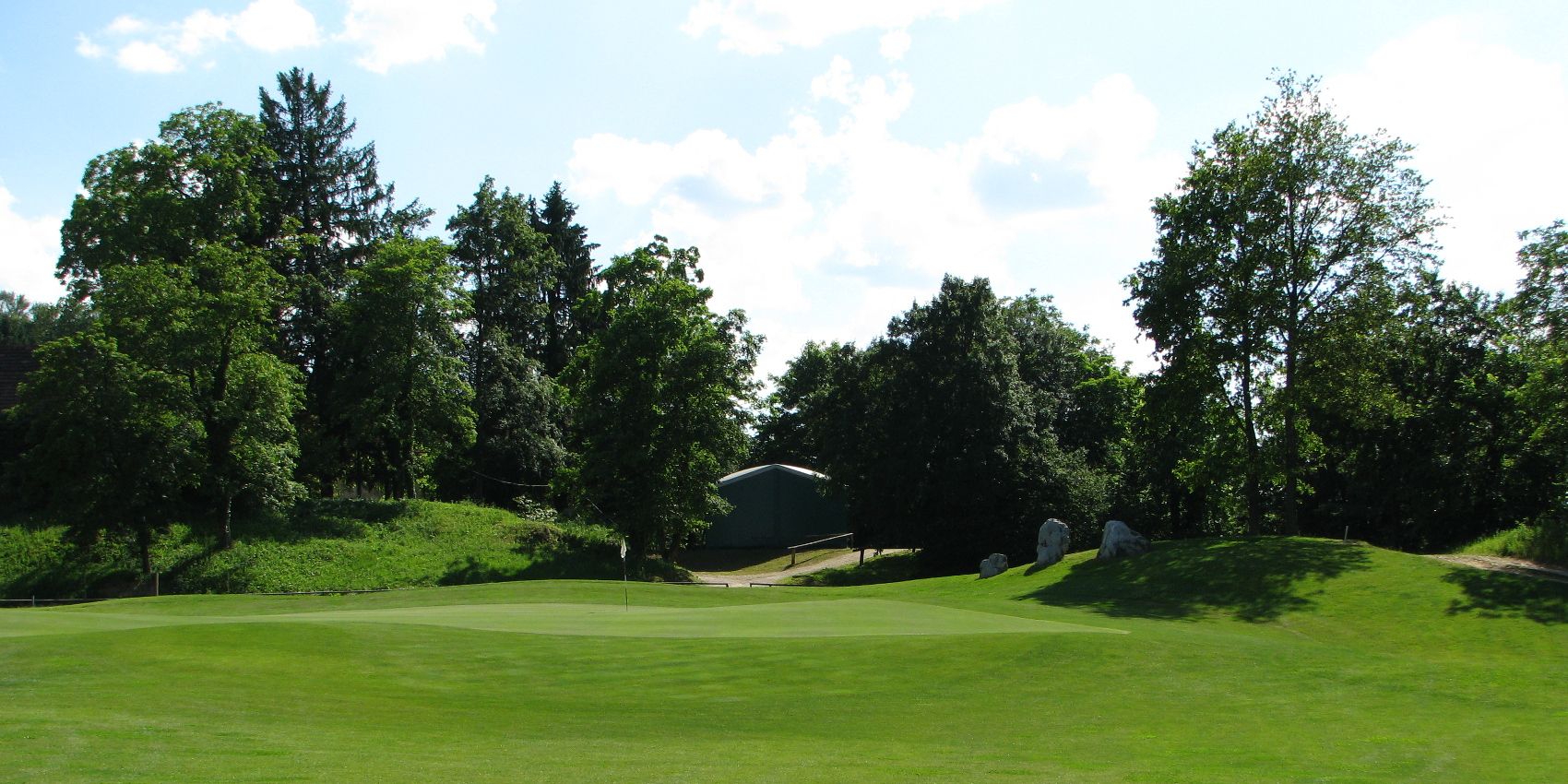 The view from the teeing ground of 352 meter long par 4 of hole six can be scary: a big depression, rising and left turn clearing and two sand hazards. The first 200 meter long shot takes us in front of sand hazard two, the distance to the green is 110 meters. We have to be extra careful when aiming at the green, so that the ball does not end in one of the two sand hazards in front of the green. Hole 6 is rounded off with a water hazard.
